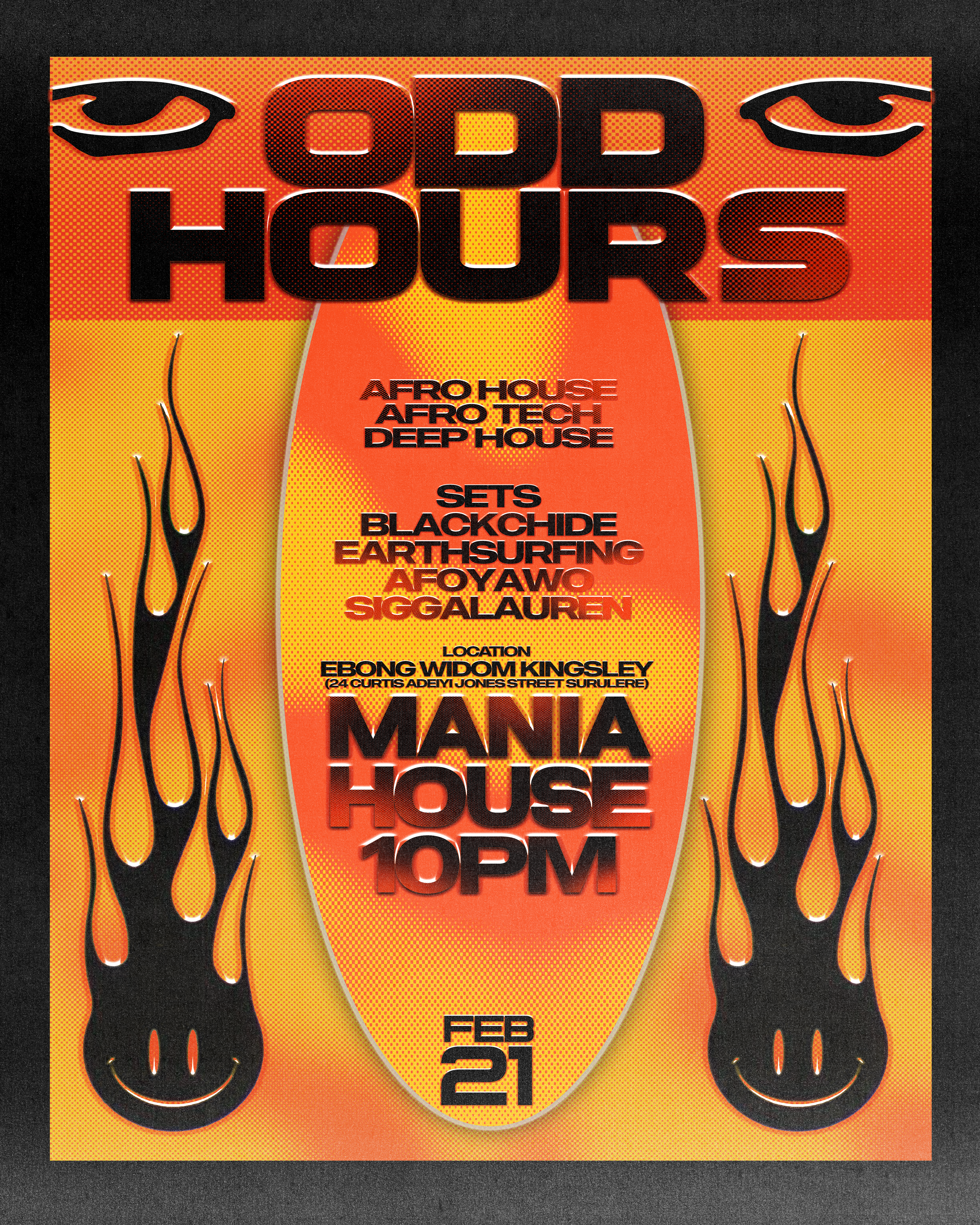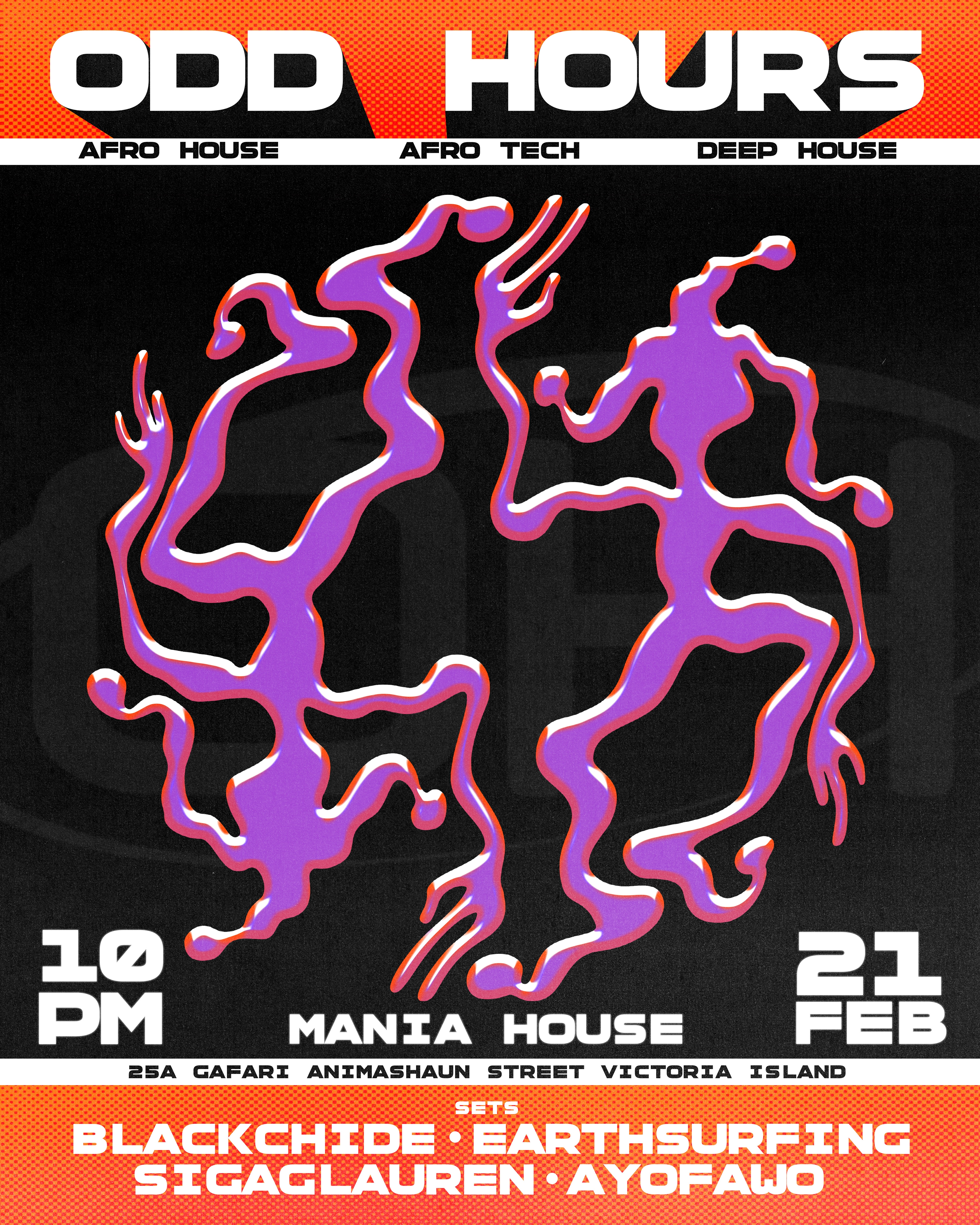 Posters for ODD HOURS; an Alternative & Afro Tech event